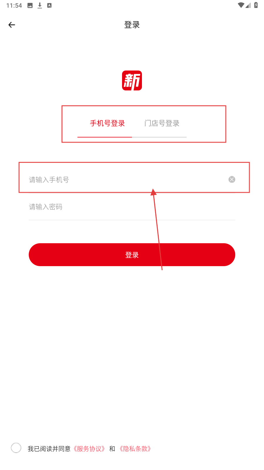 1、打开应用,进入登录页,选择“手机号登录”,在输入框填手机号,准备登录。
