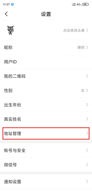 1、打开应用,进入【设置】页面,点击【地址管理】,进入收货地址管理页。