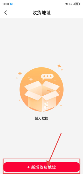 2、在收货地址页,点击【+新增收货地址】,进入添加地址页面。