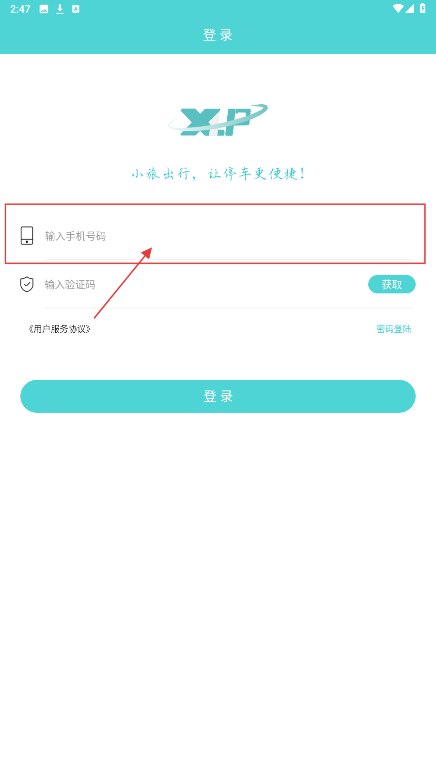 1、打开“小旅出行”应用登录页,在手机号框填号码。