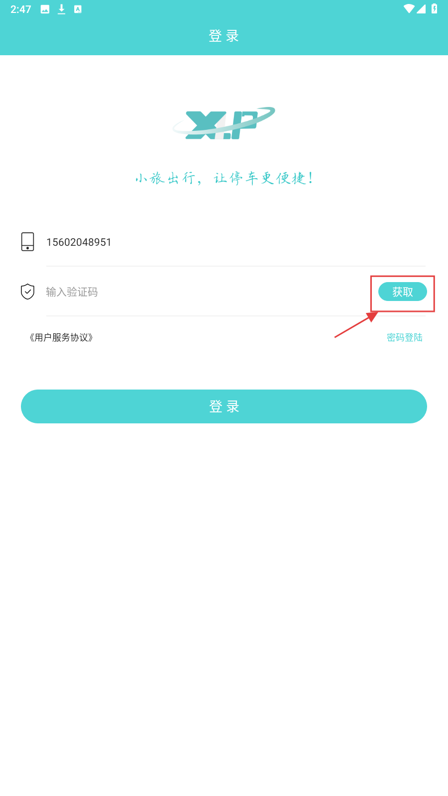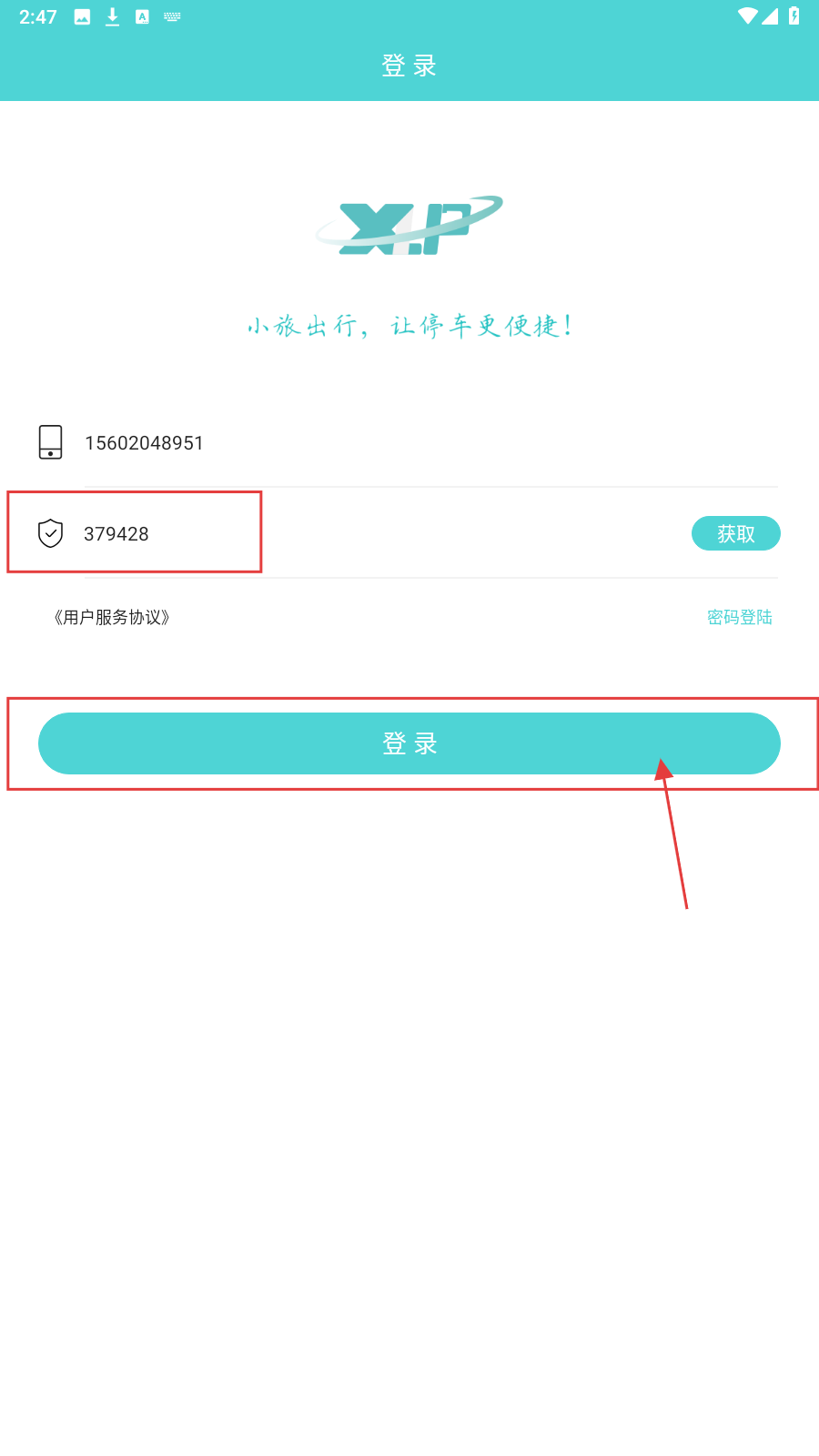 3、点击【登录】,即可完成注册进入应用,使用停车等便捷服务。