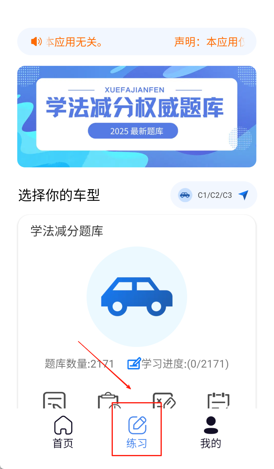 1、进入首页选择小型车或客车等对应车型呢,专项练习模块按交通标志等分类强化训练呀。