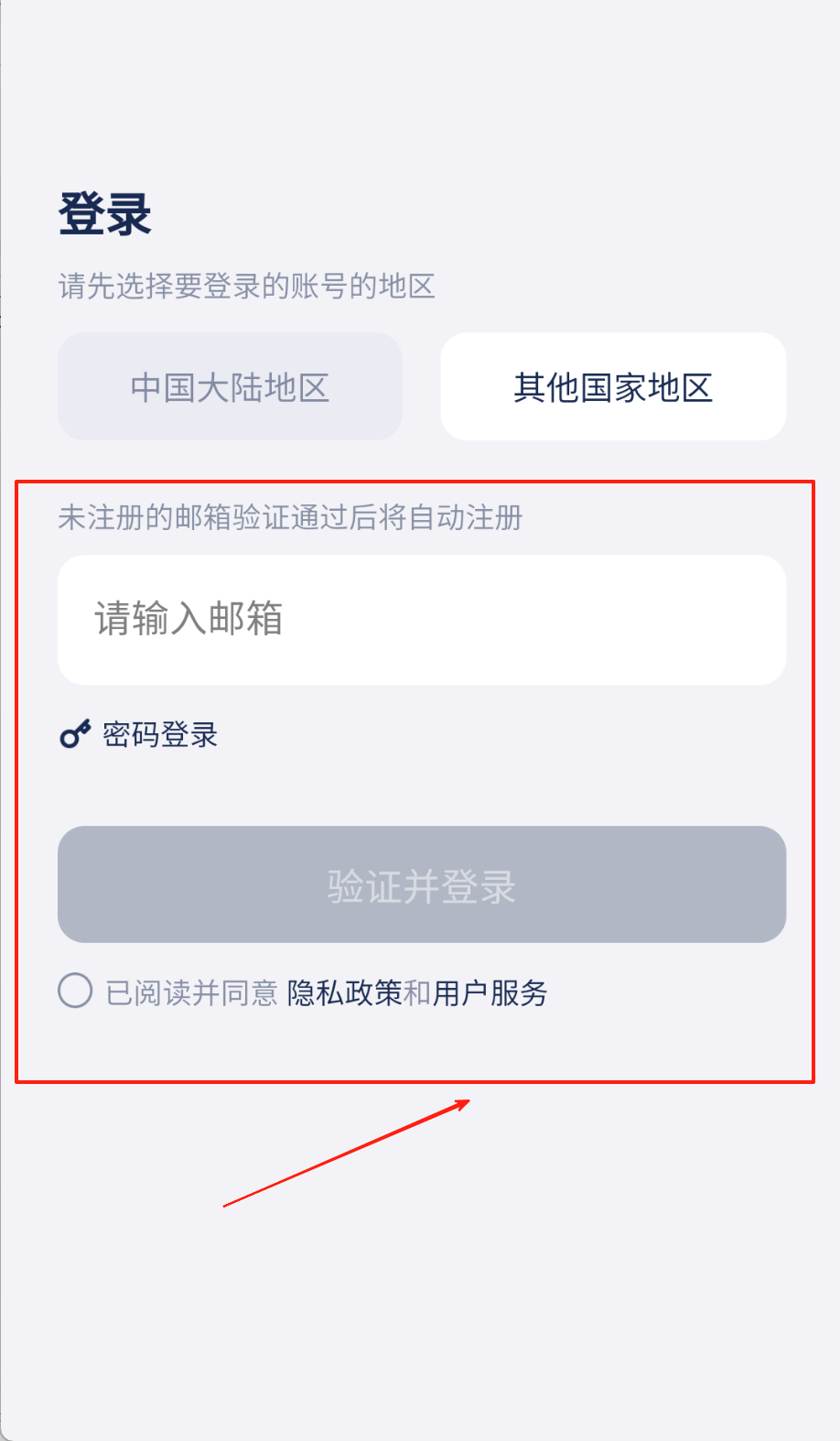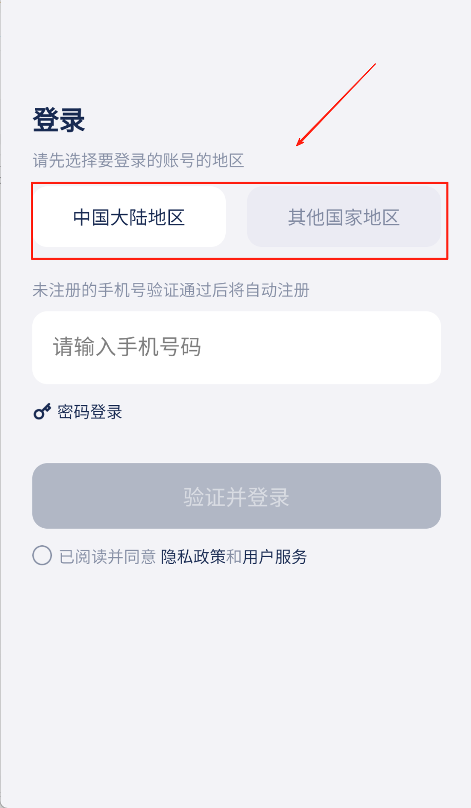 1、打开登录页先选账号地区呢,是中国大陆就点左边按钮,国外就点右边按钮呀。