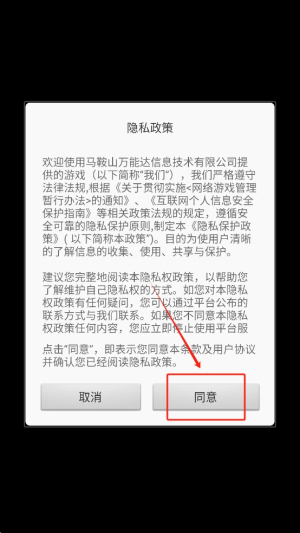 1、同意隐私政策:阅读并点击“同意”按钮,以接受隐私政策并开始游戏。