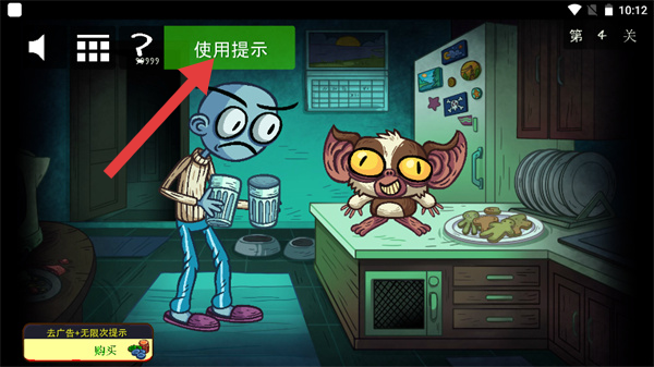 2、游戏过程中,如遇到难题(如第4关场景),可点击“使用提示”获取帮助。若想去除广告并获得无限次提示,可考虑购买相关服务。