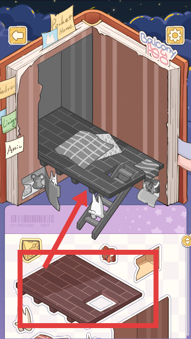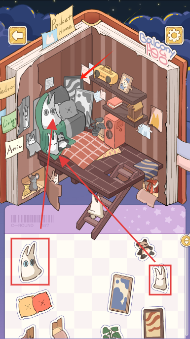 1、游戏初始,在房屋场景选择界面,有书房、阳台、卧室等不同房间可供选择,选定房间(如阳台)进入。