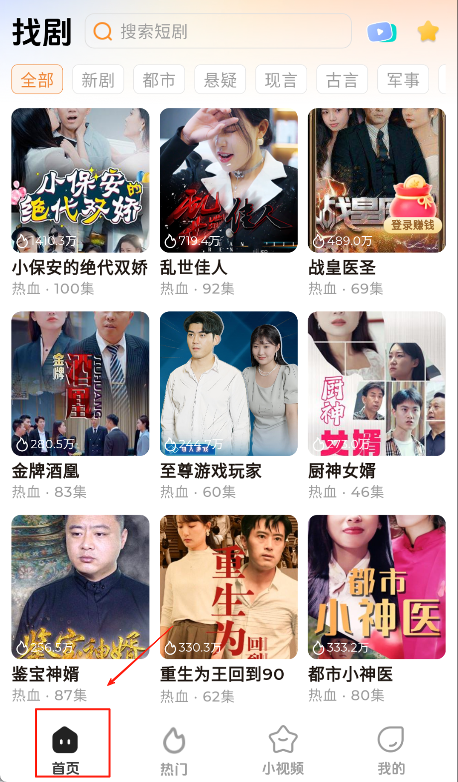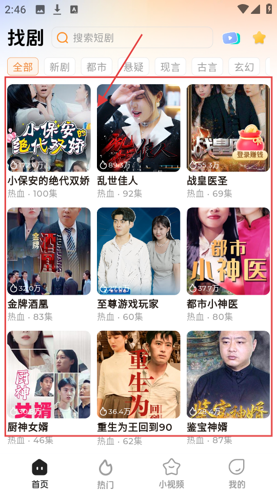 1、打开APP,在找剧页面选择目标短剧,比如【小保安的绝代双娇】,点击进入播放页面啦。