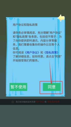 1、同意用户协议:打开游戏后,阅读并同意用户协议和隐私政策,点击“同意”按钮以接受条款并继续。