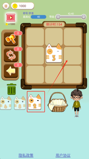 3、进行游戏:在游戏界面,通过点击相同的猫狗图标进行消除,完成关卡目标。