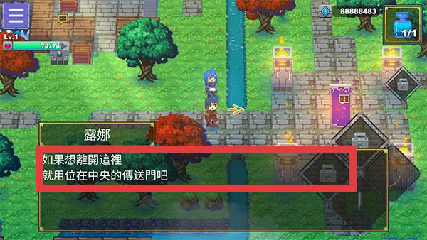 2、与场景中的NPC(如露娜)对话,获取关键信息(如“如果想離開這裡,就用位在中央的傳送門吧”),明确下一步行动方向。