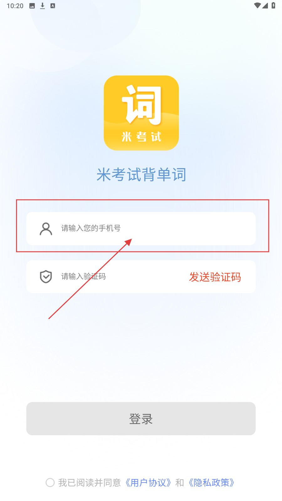 3、勾选【我已阅读并同意《用户协议》和《隐私政策》】,在【请输入验证码】栏填入验证码,点击【登录】完成登录流程。