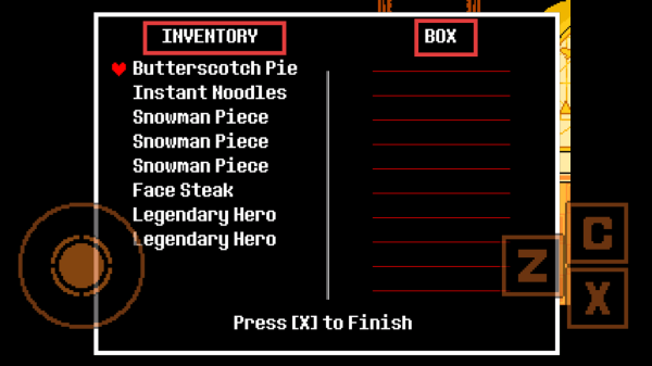 2、打开物品栏(INVENTORY),查看收集到的物品,了解其用途。物品栏右侧的BOX可能用于存放额外物品,可适时整理物品。