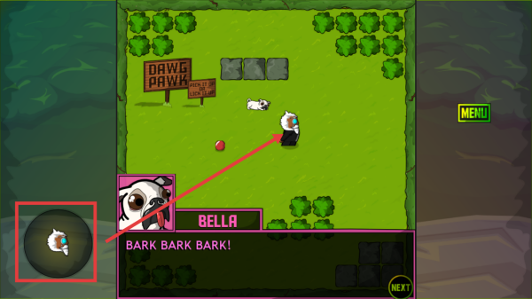 1、游戏初始,通过左下角的虚拟摇杆控制角色移动,与场景中的角色(如BELLA)互动,获取信息推进剧情。
