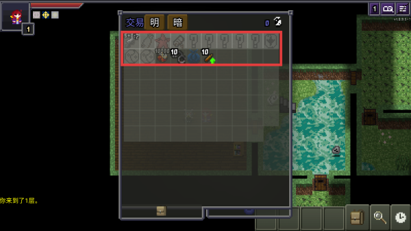 2、进入游戏场景(第1层),遇到“交易”界面,查看可交易物品,根据自身需求和资源情况,决定是否进行交易,合理管理游戏资源。
