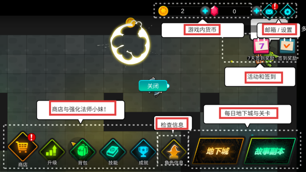 1、游戏初始界面,“邮箱/设置”可处理邮件、调整游戏设置,“活动和签到”能获取签到奖励,其中还有更多功能可以探索。