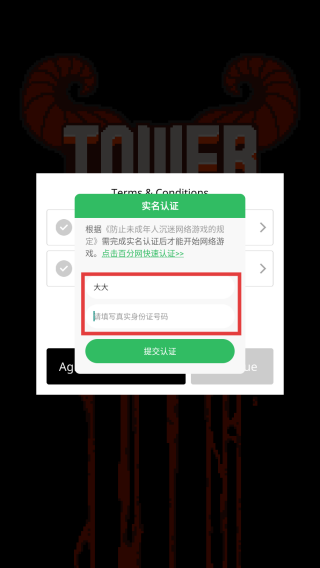 1、进入游戏,自动弹出实名认证界面。