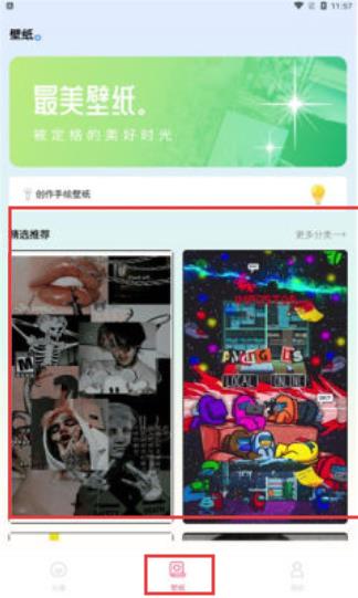 2、完成头像设置或切换至【壁纸】页,选心仪壁纸(最美壁纸/创作手绘等),点击预览。