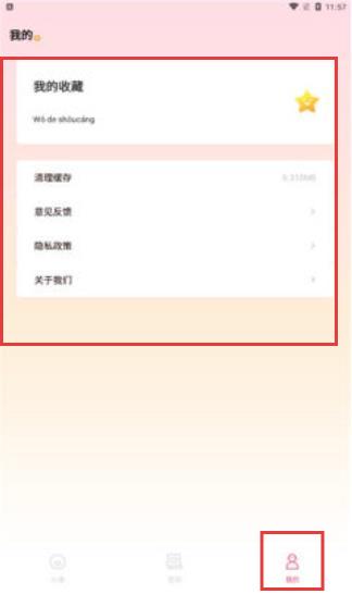 3、进入【我的】页,可查看收藏、清理缓存、反馈意见,按需操作完成个性化设置流程。