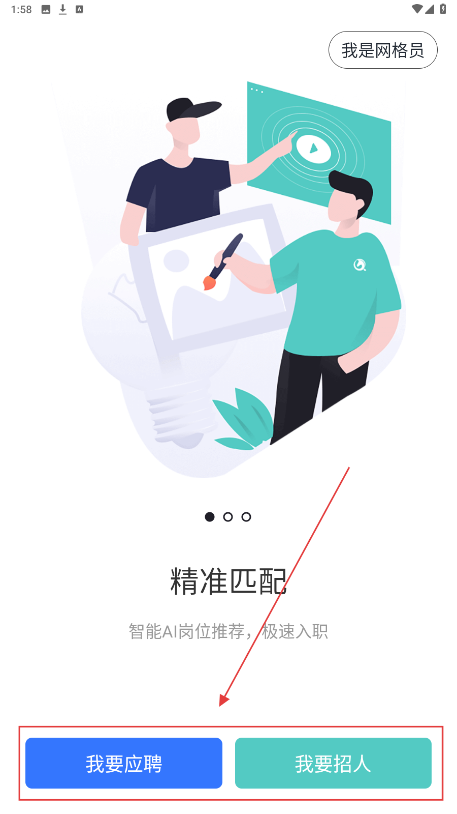 1、打开招聘应用,在首页选【我要应聘】或【我要招人】。