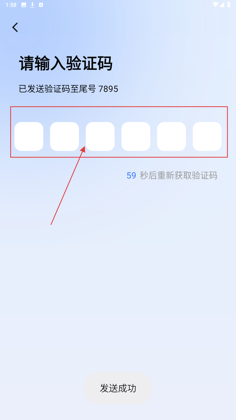 3、接收验证码,填6位码(如短信获取),完成注册。