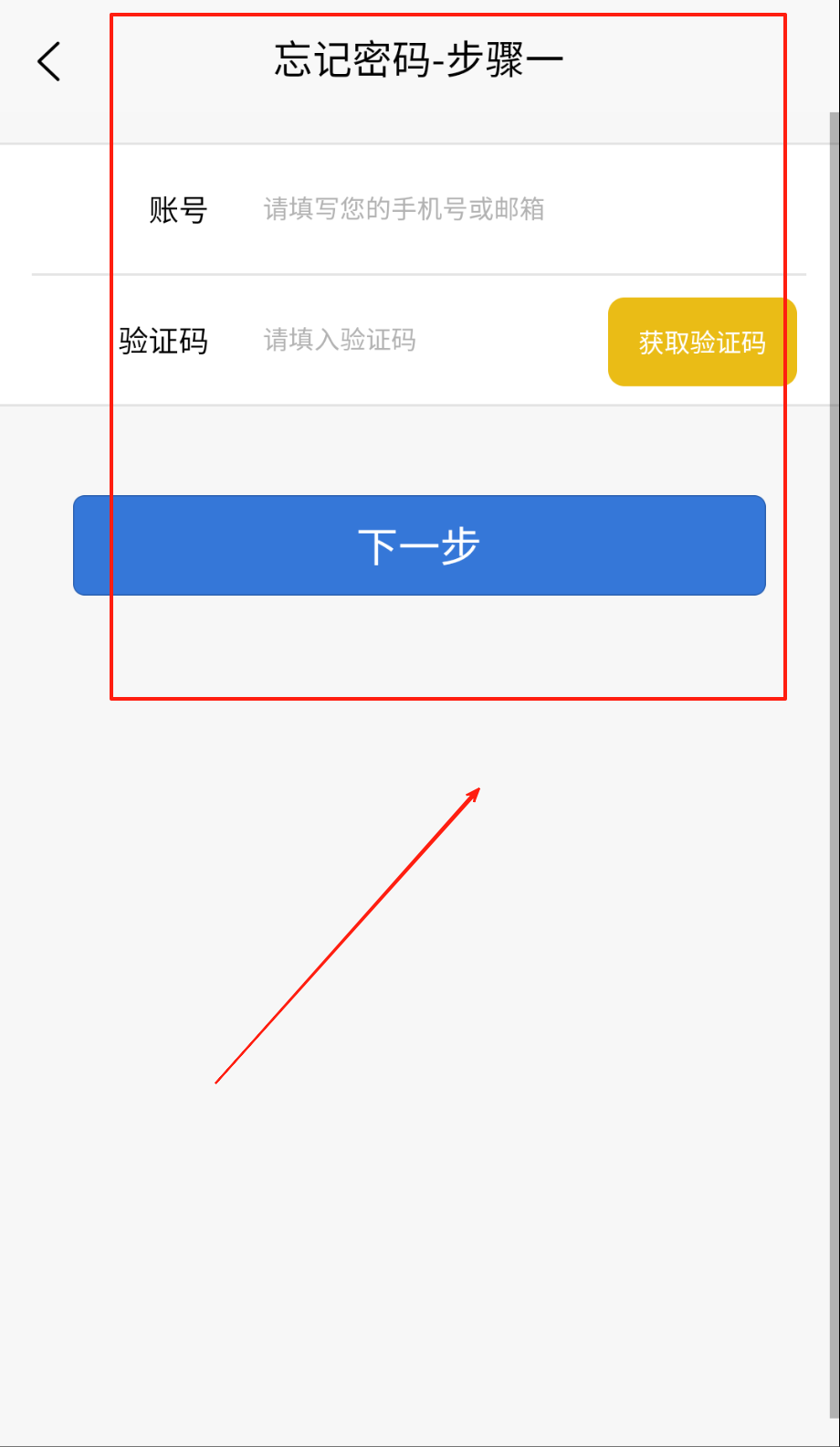 3、忘记密码别着急,在步骤一填写账号和验证码,点击获取验证码并填入,最后点下一步就能重置密码了。