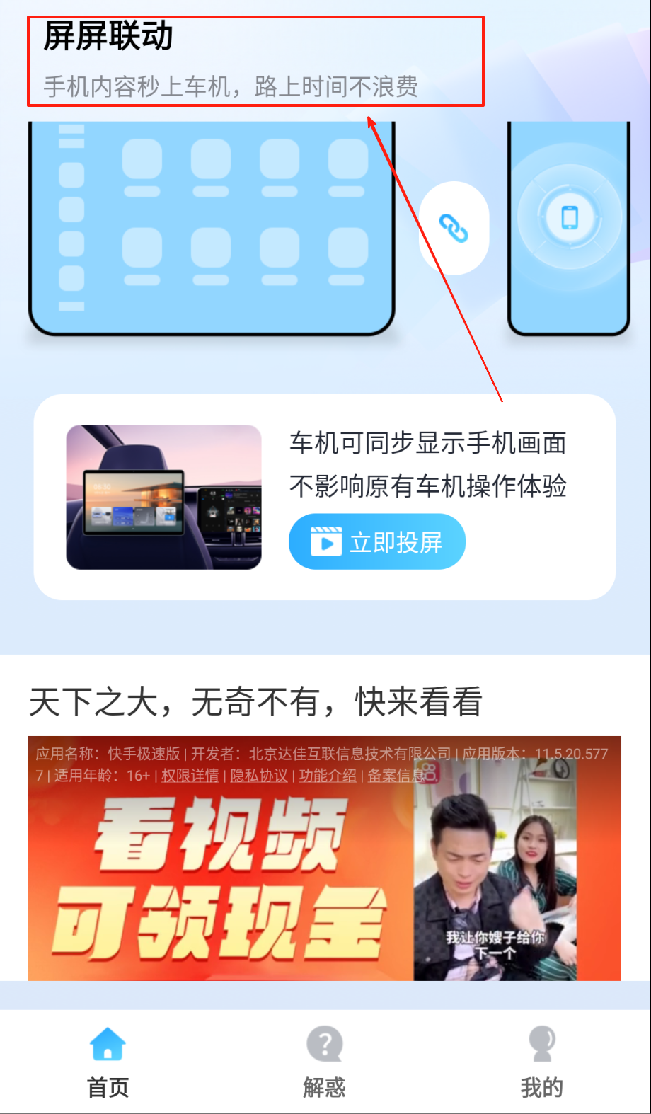 2、在导航界面选择目的地,点击投屏按钮即可将实时导航信息同步显示至车机大屏。