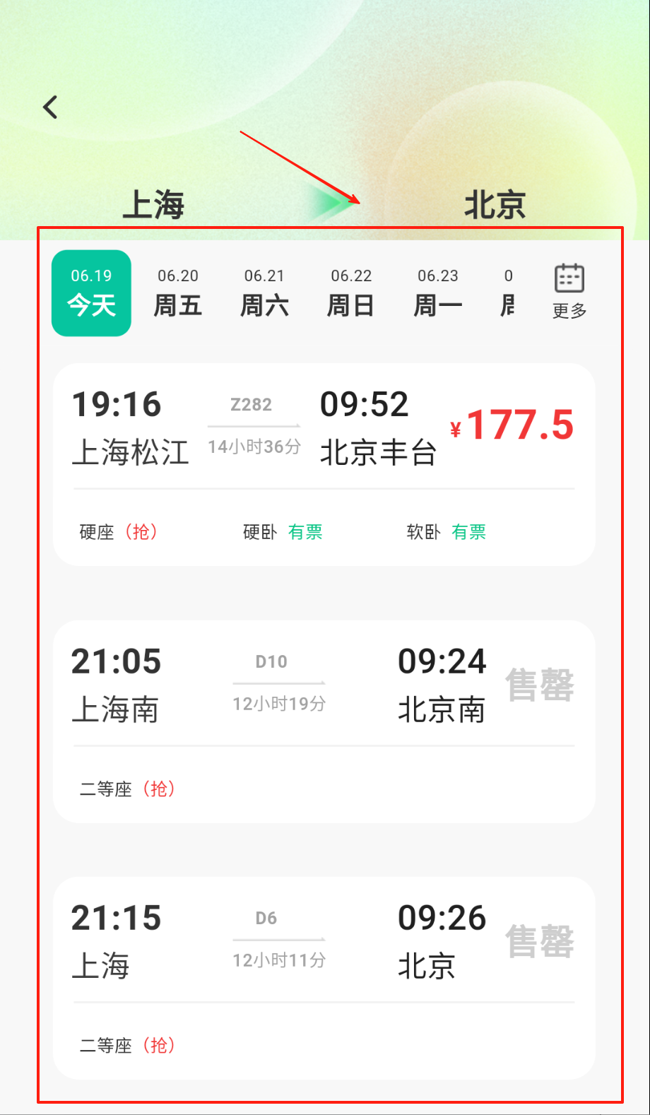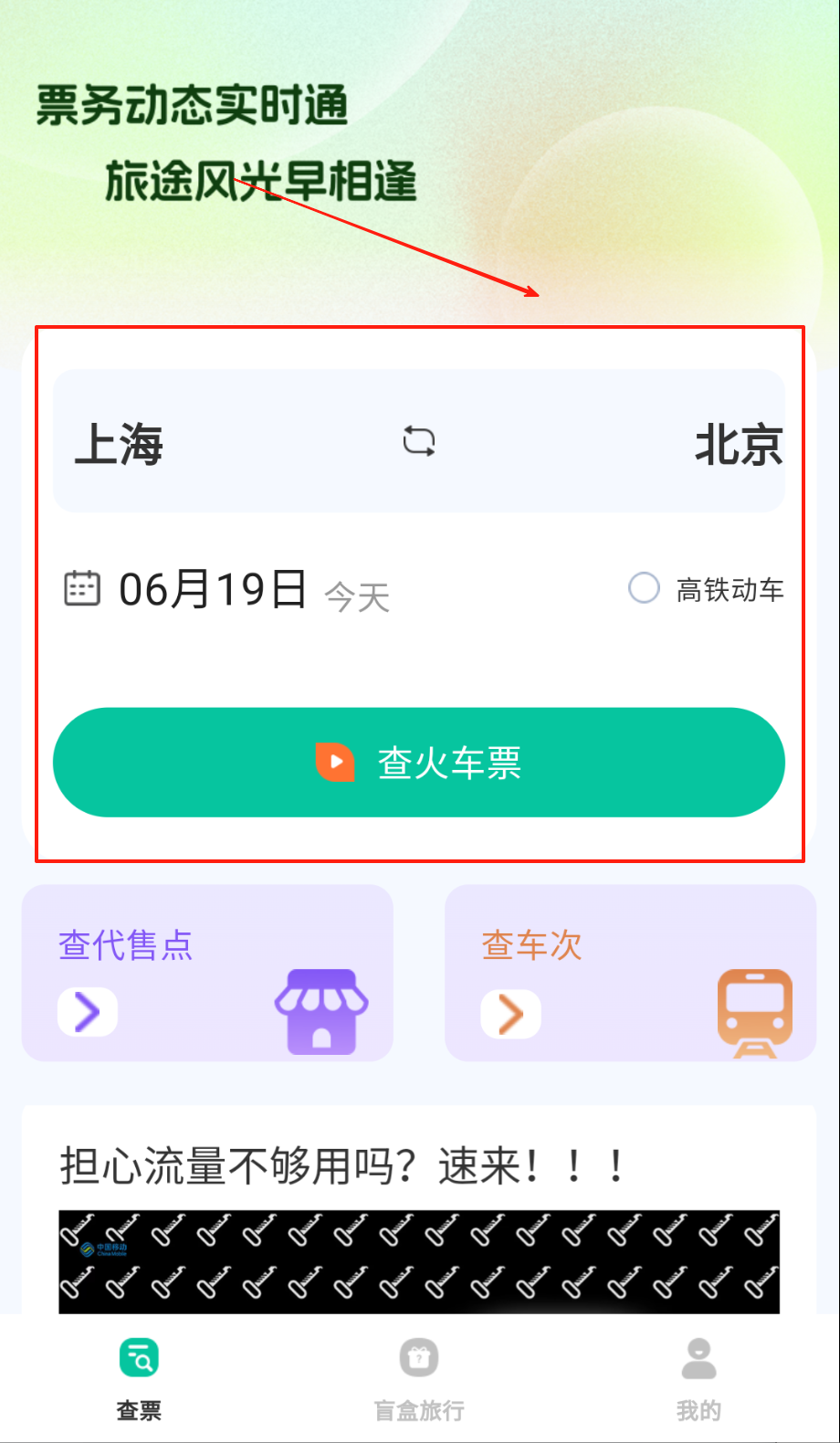 1、输入出发地与目的地获取实时余票信息,筛选车次类型、出发时间等条件锁定目标车次。