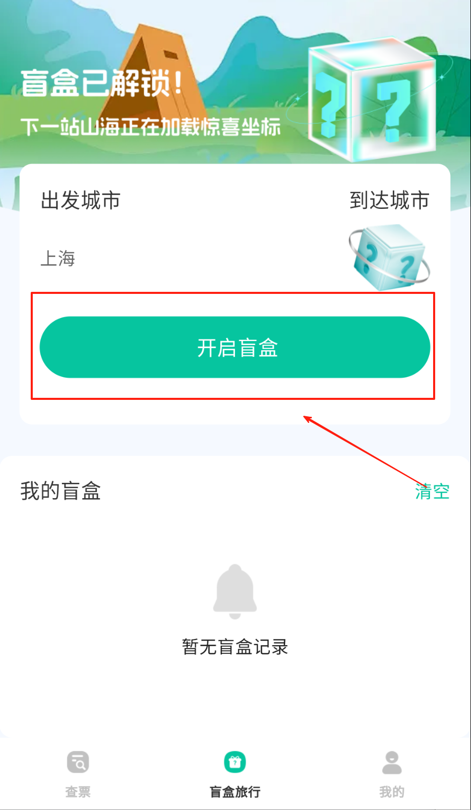 3、使用盲盒旅行功能随机生成目的地,系统同步推送当地景点攻略与对应车票信息。