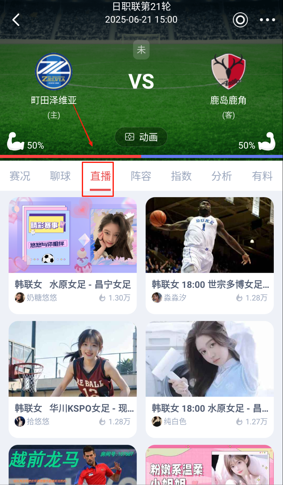 1、选择关注赛事后自动接收开赛提醒,点击直播入口即可观看实时比赛画面。