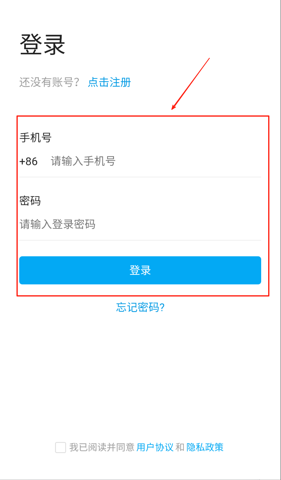 2、登录时直接输入注册的手机号和密码,记得勾选同意用户协议的小方框,点击登录按钮就能进入个人中心查看服务呢。