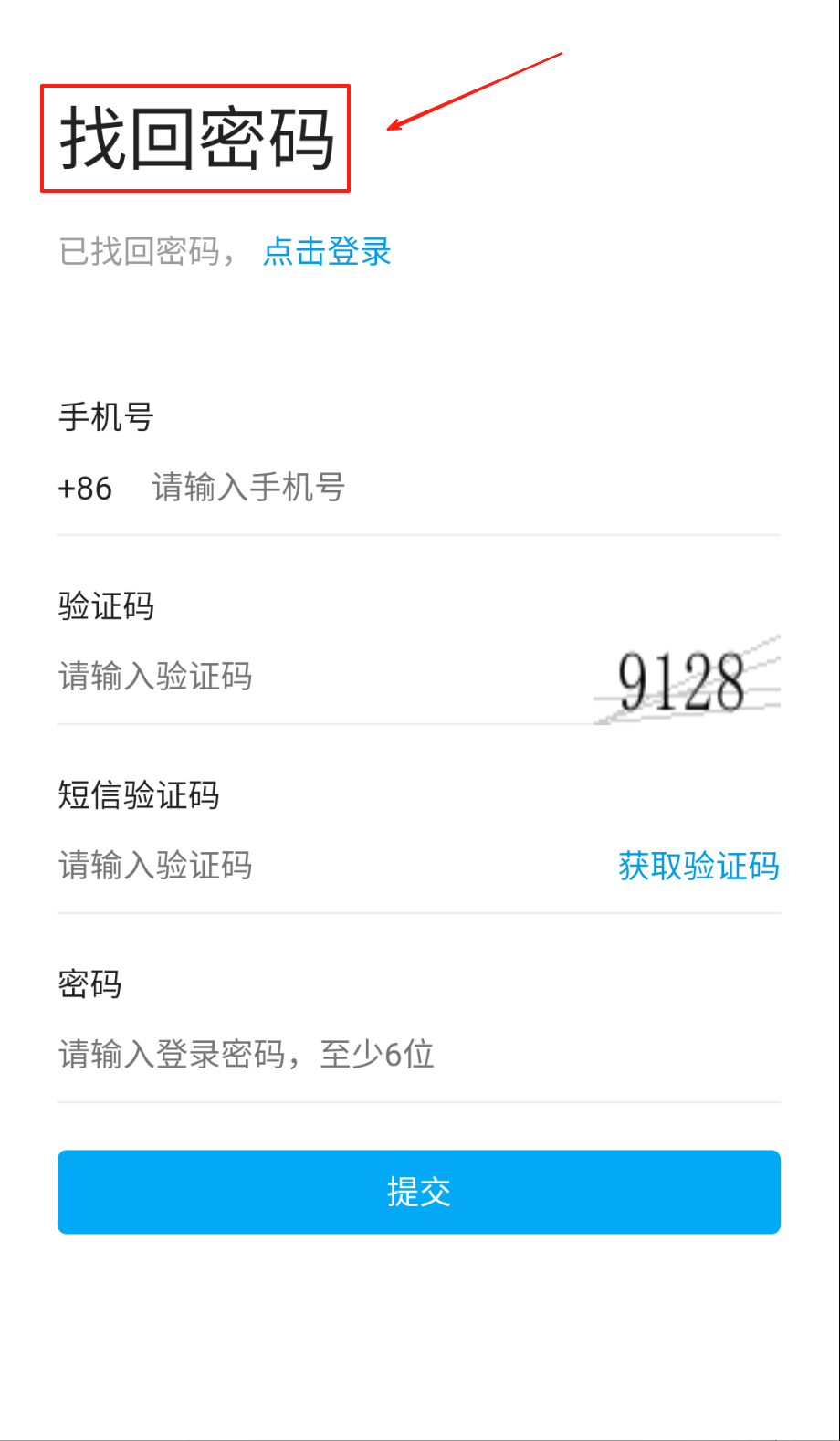 3、如果忘记密码可以点击找回密码,通过手机验证码验证身份后,重新设置新密码就能恢复正常登录使用呀。