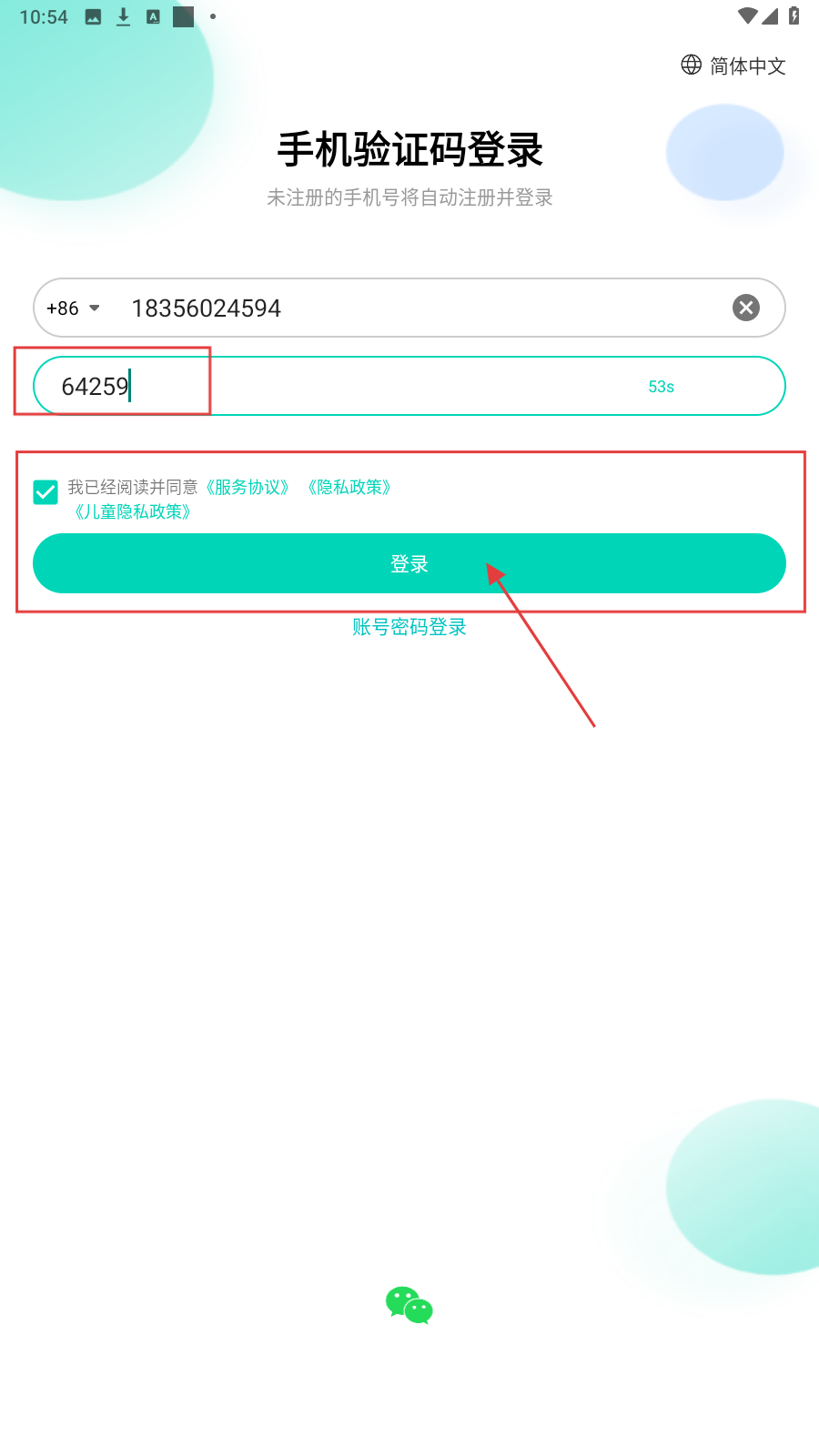 3、点击【登录】,完成账号登录(未注册则自动注册并登录),进入应用。