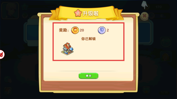 3、随着游戏推进,达到升级条件后,获得奖励。点击“确定”后,继续利用资源和解锁内容,发展游戏中的城镇或岛屿建设。