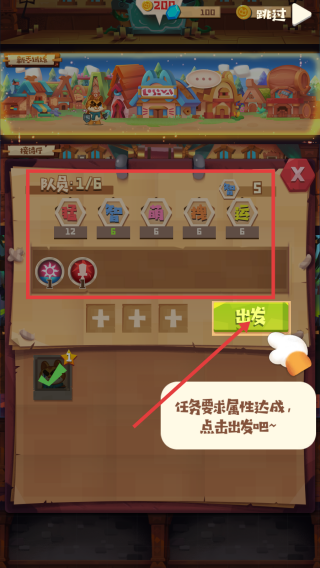 2、在准备界面,查看队员数量和各项属性数值(猛、智、萌等)。确保“智”属性达到5及以上,满足任务要求后,点击“出发”进入关卡。