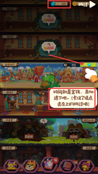 3、进入关卡后,关注屏幕上方的资源数值和倒计时。根据提示,可消耗资源点击“加速”按钮加快游戏进程。