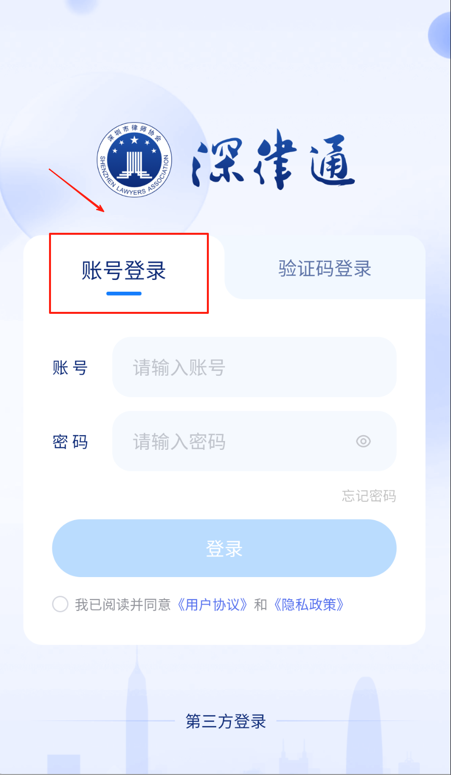 2、 如果想用账号密码登录,就在登录页选账号登录选项,准确输入你的账号和对应密码,也别忘了勾选同意用户协议。