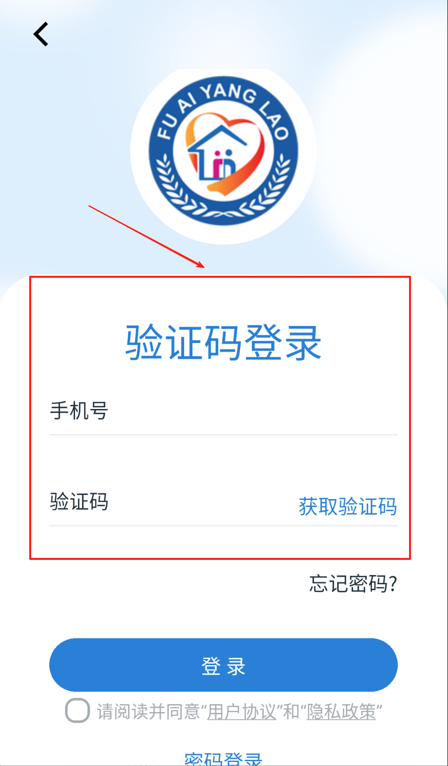 1、登录页选验证码登录填手机号,点“获取验证码”收短信填数字,记得勾用户协议框再点蓝色登录按钮哦。
