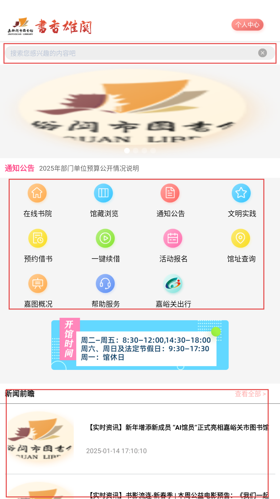 4、图书馆服务集成:提供馆藏查询、分馆地址导航、借阅记录查询、图书续借与预约等全流程图书馆服务功能。