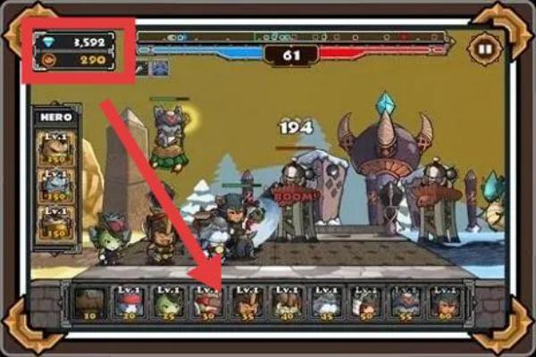 3、在战斗场景中,多积累钻石和金币,可以利用经济购买更多新英雄。