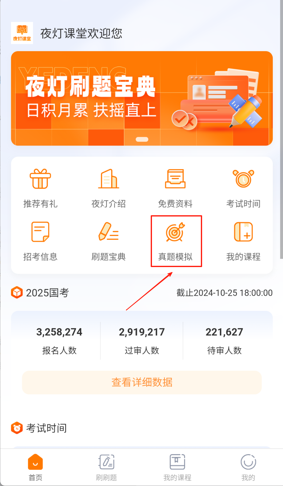 夜灯课堂提供公务员考试全周期学习解决方案,集成智能组卷系统与大数据考情分析功能,覆盖行测、申论等核心科目20000+真题库,通过个性化学习路径规划与薄弱点靶向训练,助力考生高效提升应试能力。
