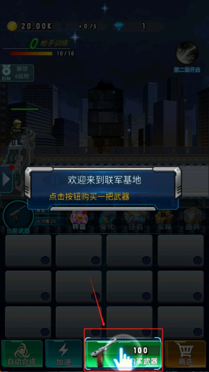 1、如何购买武器?在游戏主界面,点击“购买武器”按钮,选择一把武器进行购买。