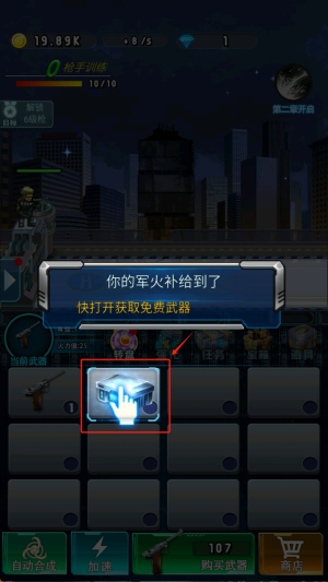 2、如何领取补给?在武器栏中,点击带有“补给”标志的箱子,领取免费武器。