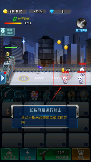 3、如何进行射击?进入游戏后,长按屏幕进行射击,滑动手指来调整射击瞄准的方向。