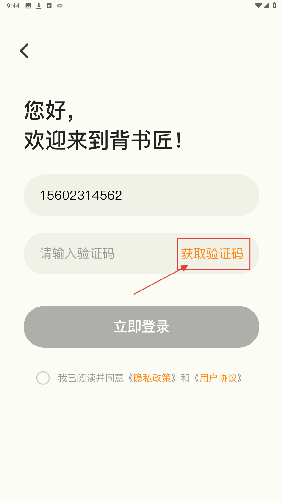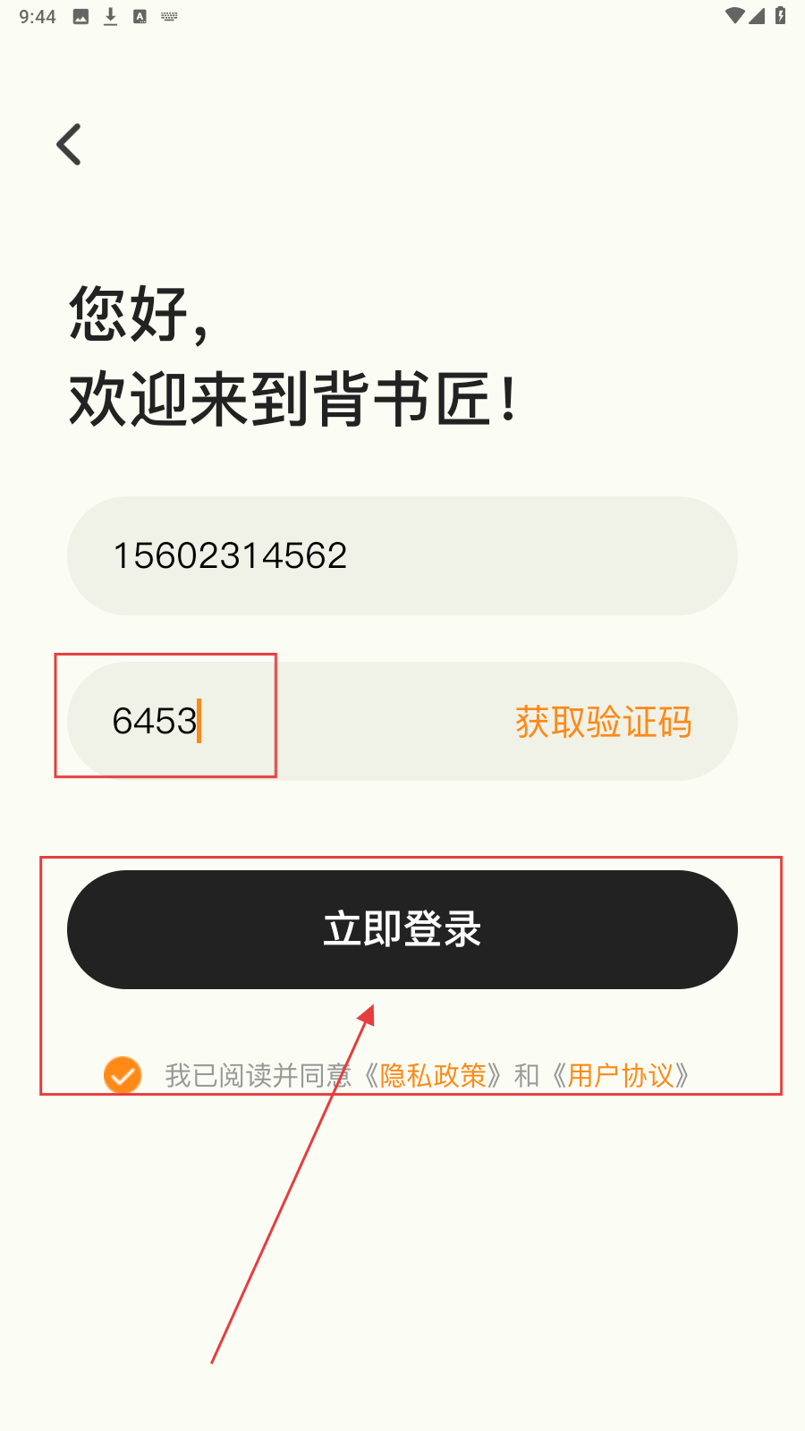 3、勾选“我已阅读并同意《隐私政策》和《用户协议》”,点击【立即登录】按钮,完成应用登录流程。