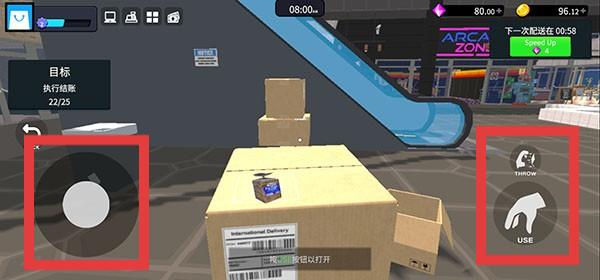 1、游戏开始,在场景中通过左下角的移动摇杆控制角色移动,利用右下角的“USE”按钮与场景中的物品交互。