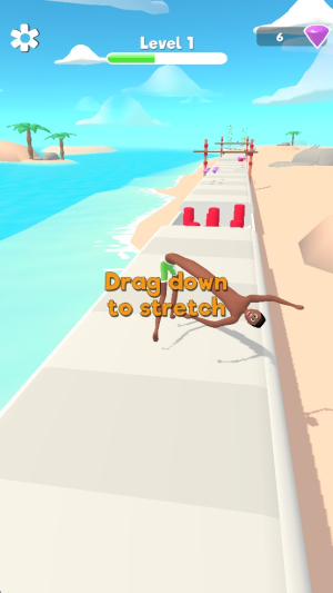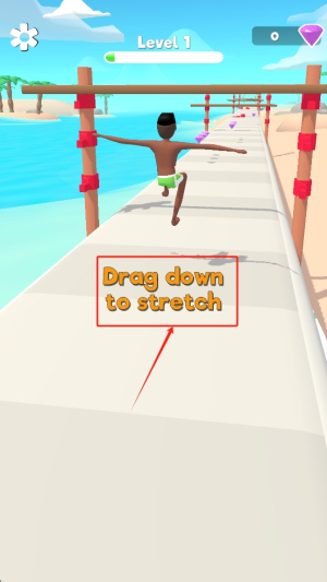2、控制角色:在角色移动时,向下拖动屏幕来拉伸角色,保持平衡。