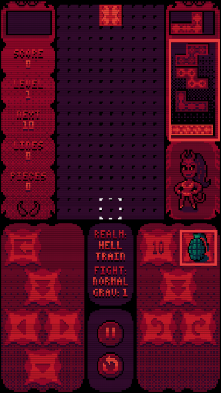 2、进入游戏,熟悉界面,左侧显示分数、等级等,中间是消除区域,右侧是角色及待消除方块队列。操控方块移动消除,积累分数升级。