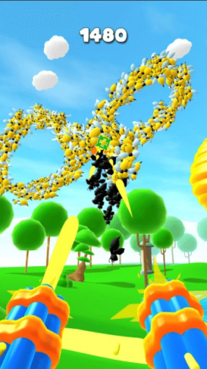 4、逼真特效沉浸体验:被击中的蜜蜂四散飞溅,搭配嗡嗡的音效与紧张的背景音乐,营造出身临其境的射击氛围。