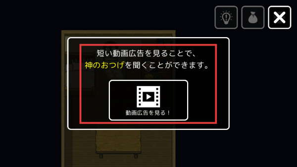 2、遇到日文提示信息,借助翻译工具理解。按提示点击“观看动画广告”按钮,获取奖励或线索。