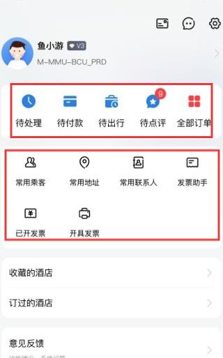 3、进入个人中心,使用订单管理、常用信息设置(常用乘客、地址等)功能,完成出行服务体验流程。